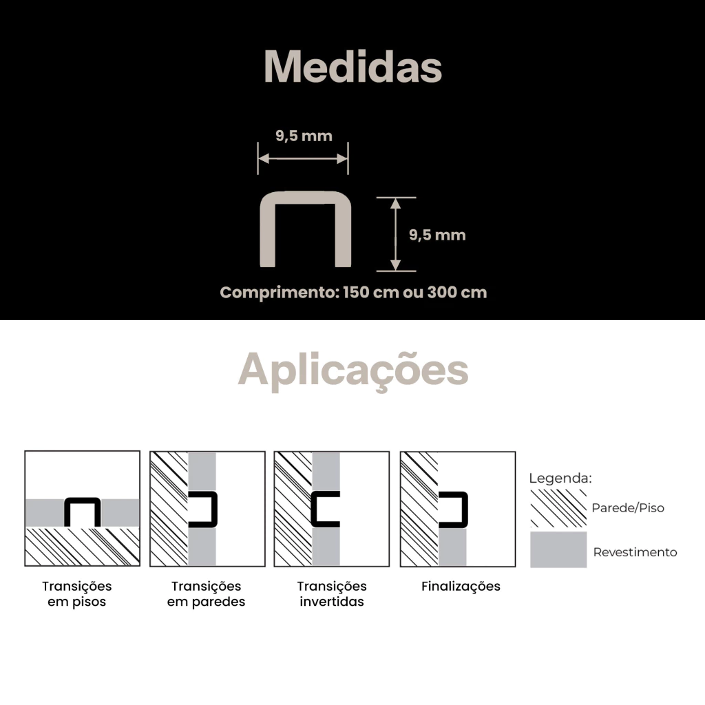 Fabricados em alumínio, os perfis podem ser utilizados em alvenaria e também movelaria.