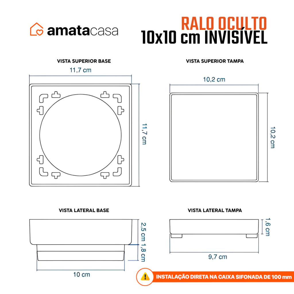 O Ralo Oculto Amatacasa 10x10 cm é ideal para quem quer deixar o ambiente mais moderno e elegante, sem abrir mão da praticidade e segurança.